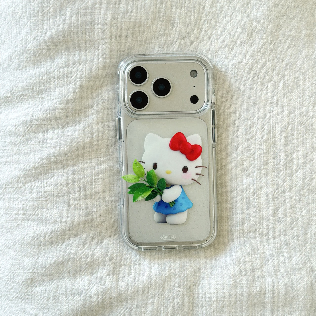 Kitty round-edged airbag double-sided phone case with pomelo leaf design