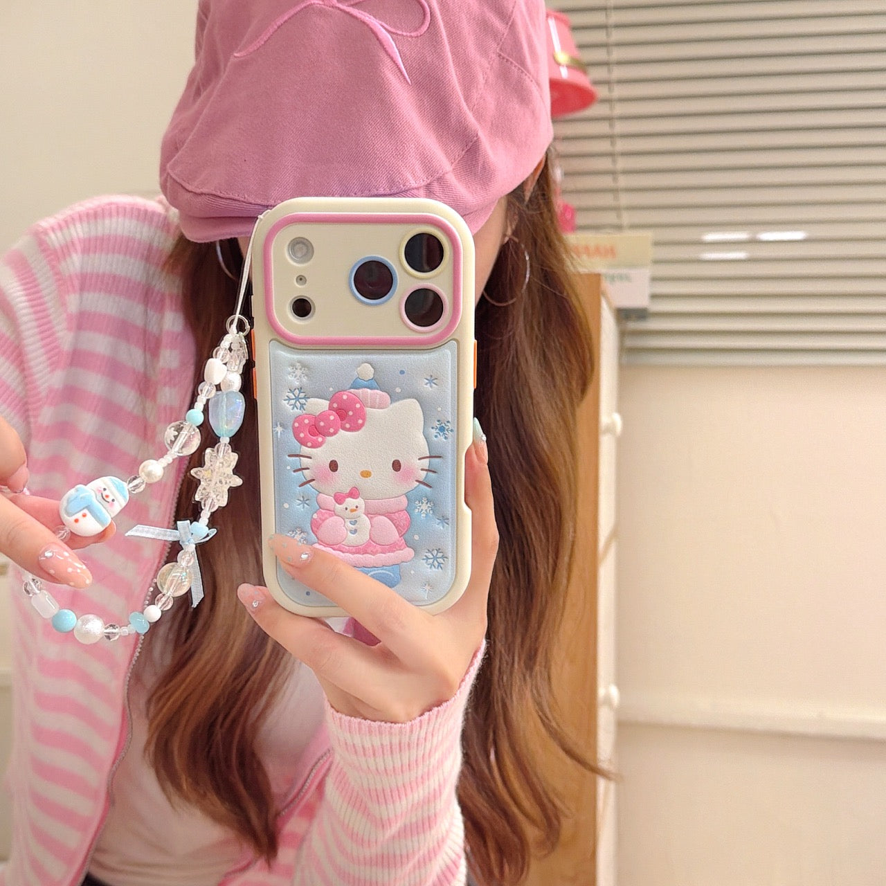Snowflake hugging a snowman Kitty rounded 3D leather texture phone case