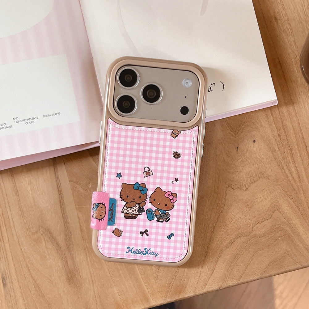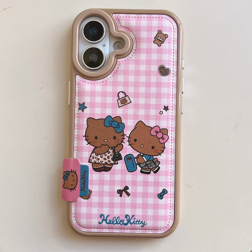 Pink checkered Kitty phone case for iPhone 17