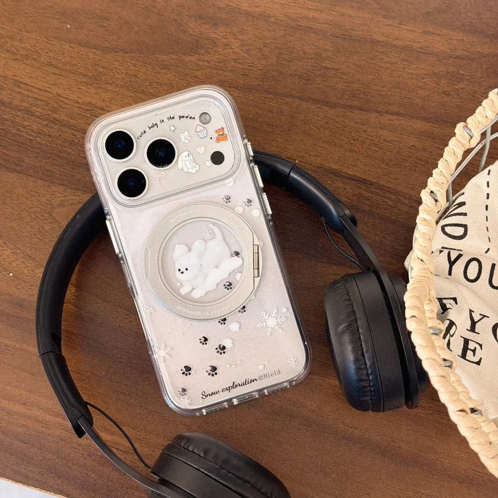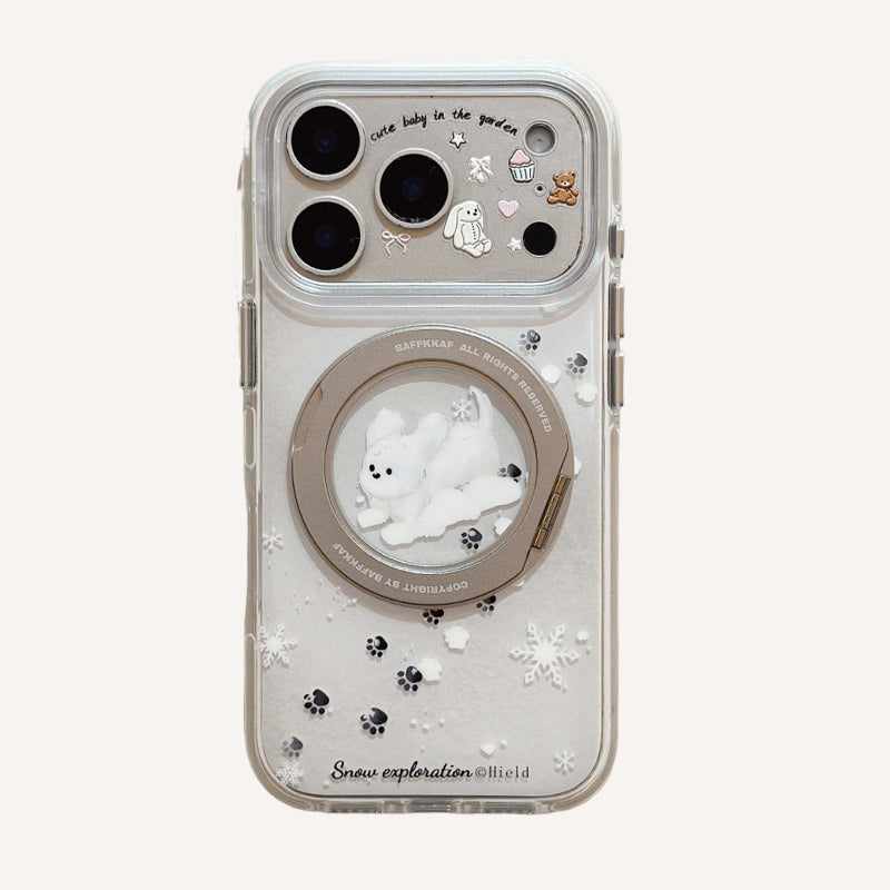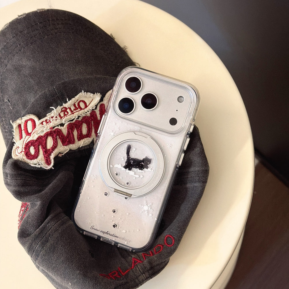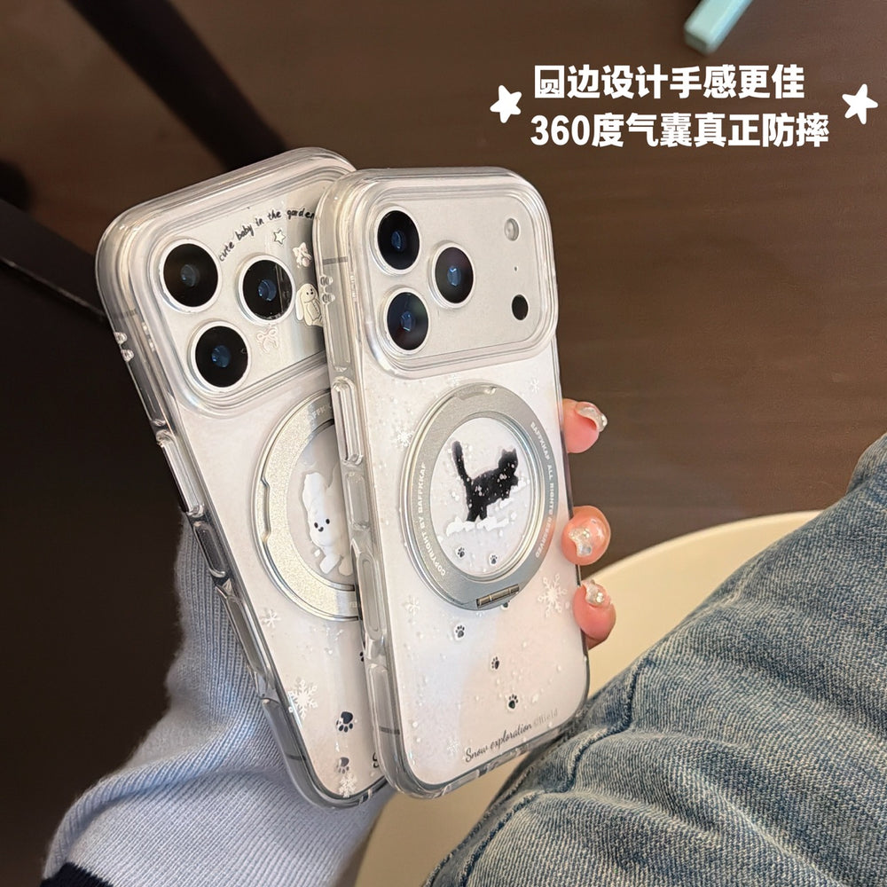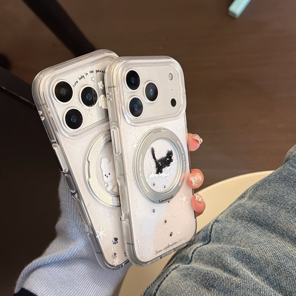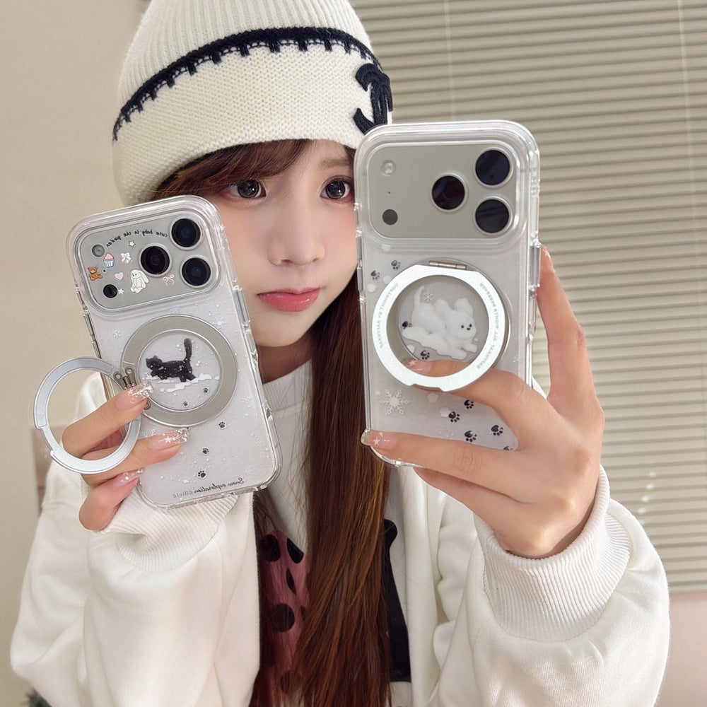 Winter Snowflake Black Cat and White Dog Phone Case