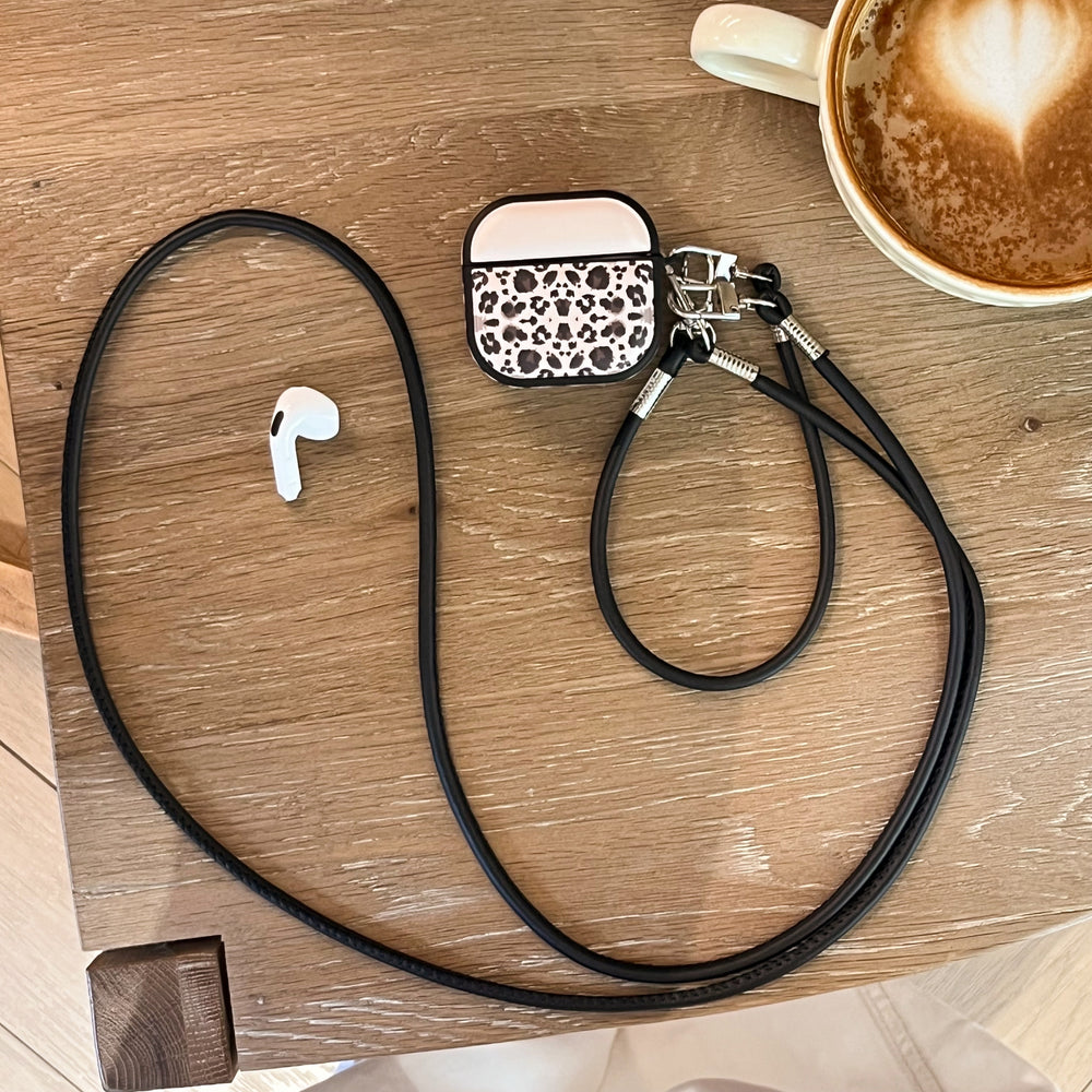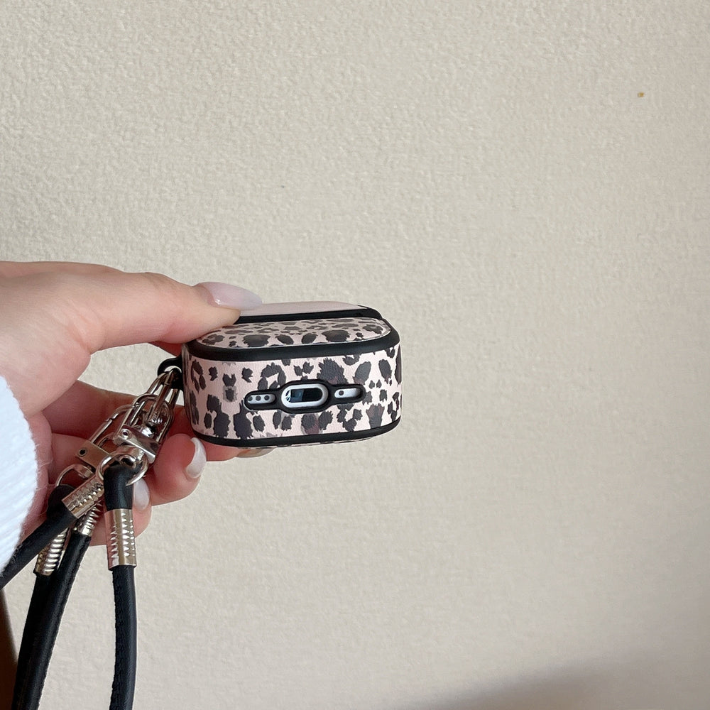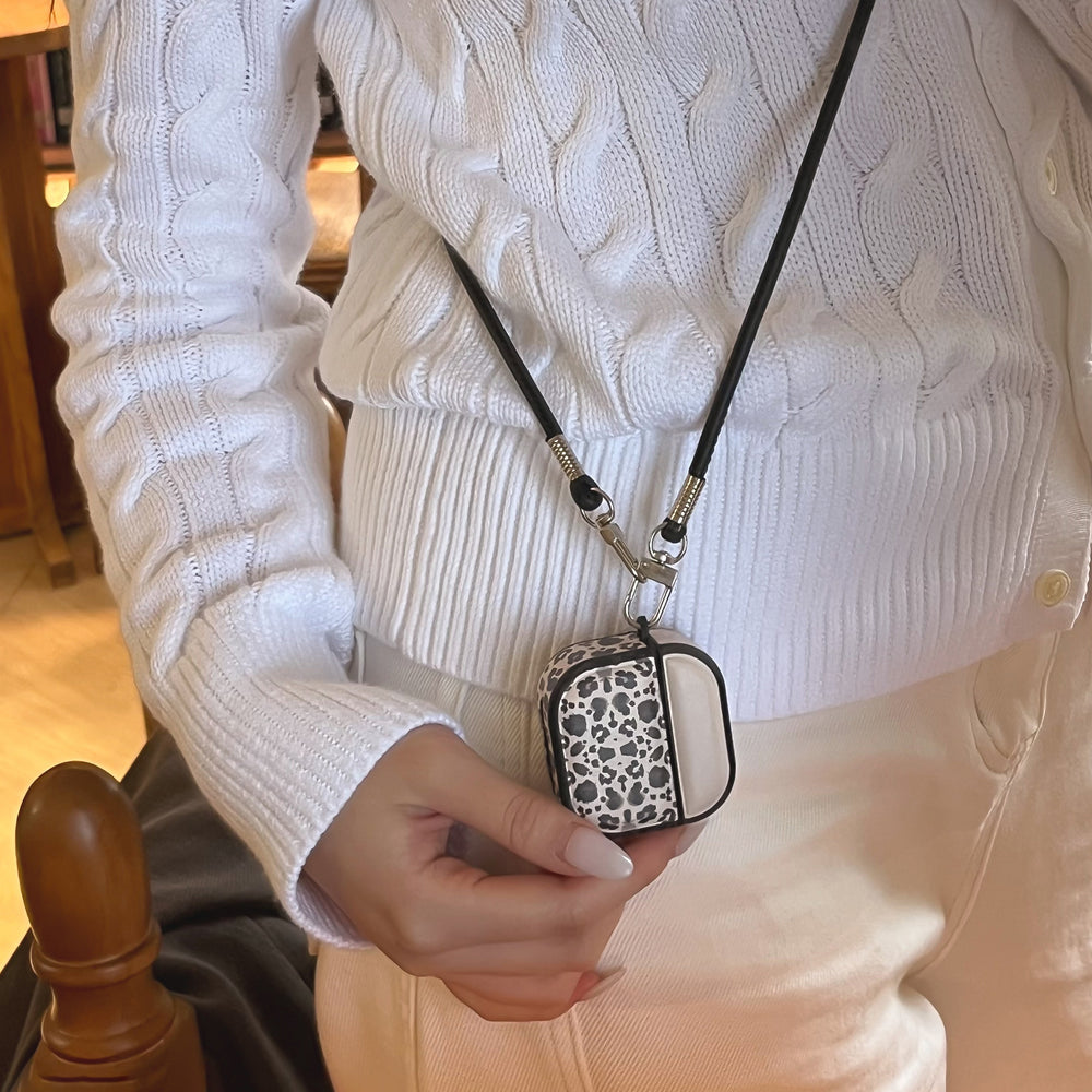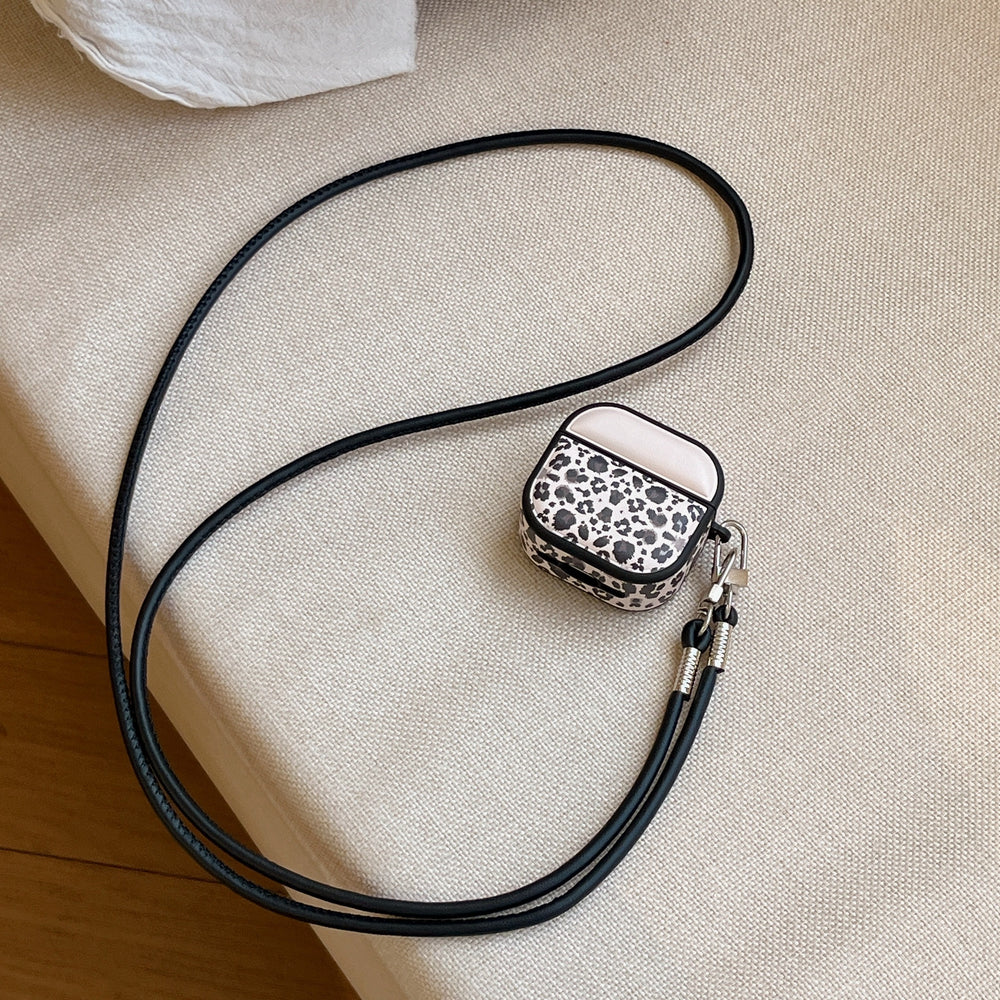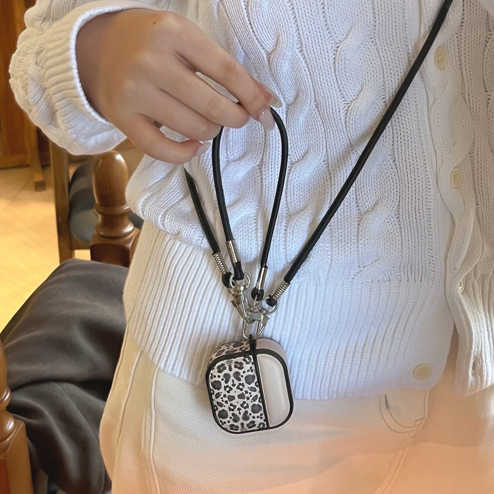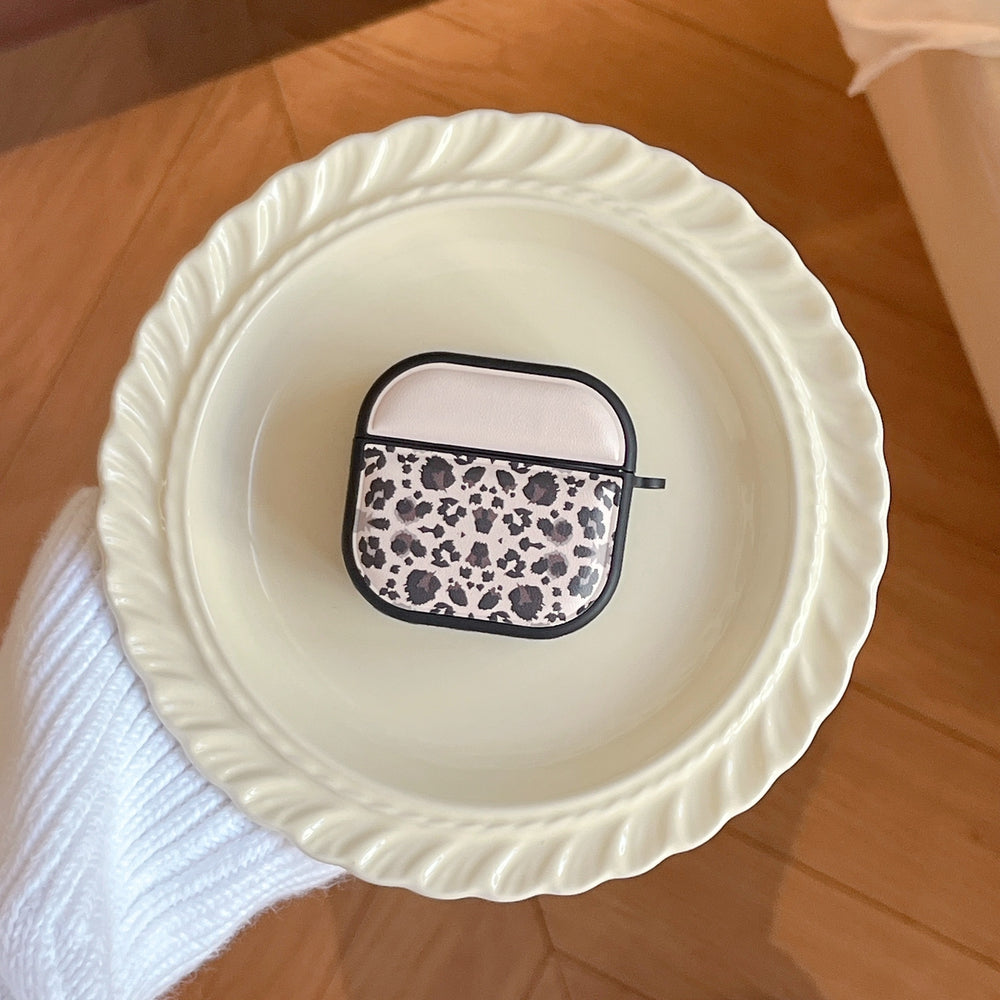 Color-blocked black leopard print magnetic drum-shaped earphone case