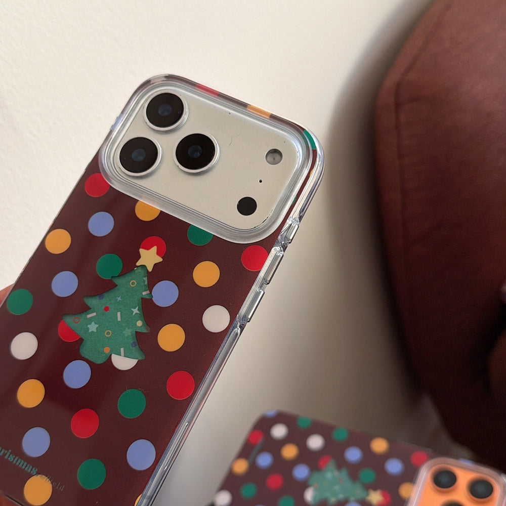 Colorful polka dot Christmas tree rounded edge airbag phone case