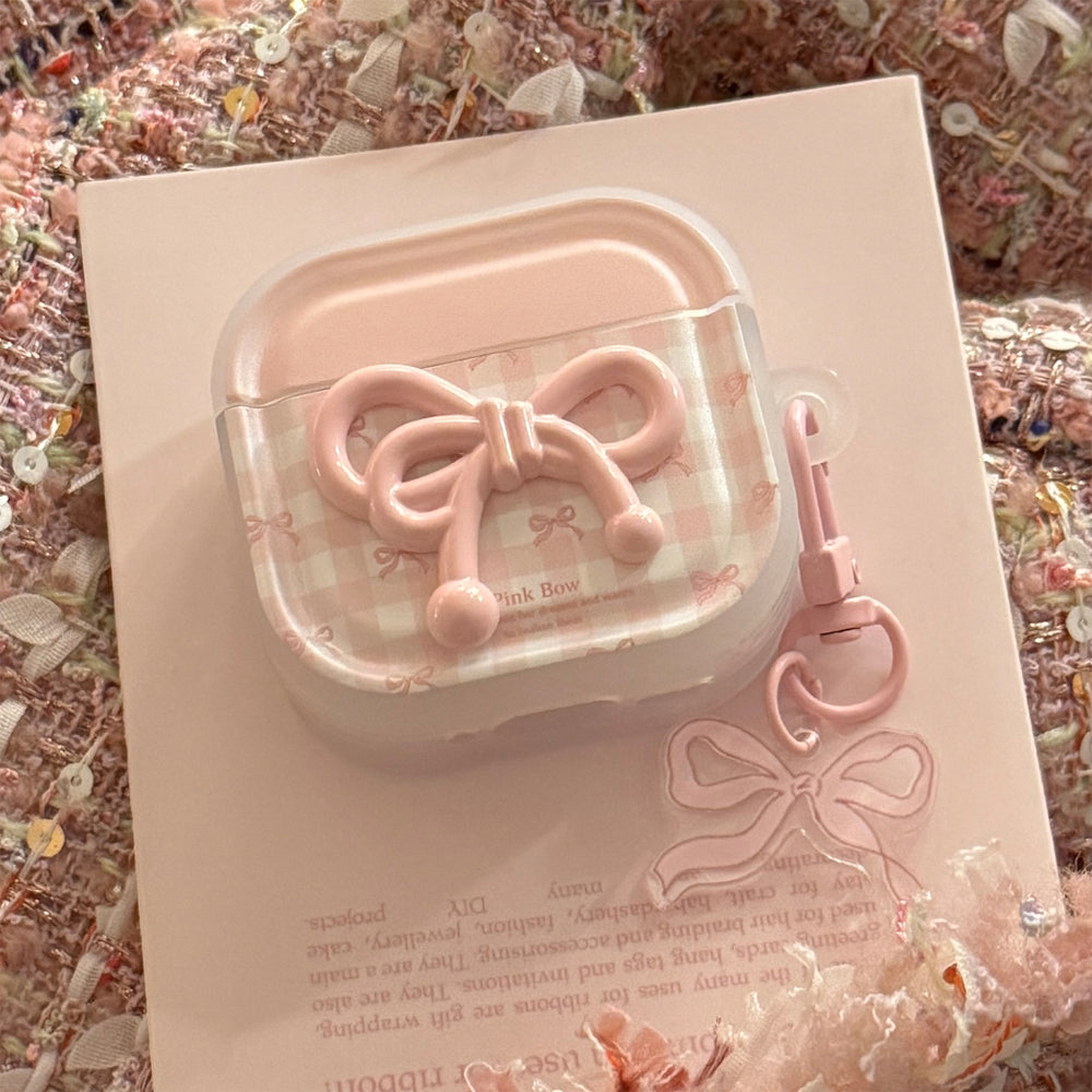 Semi-transparent pink plaid Apple earphone case
