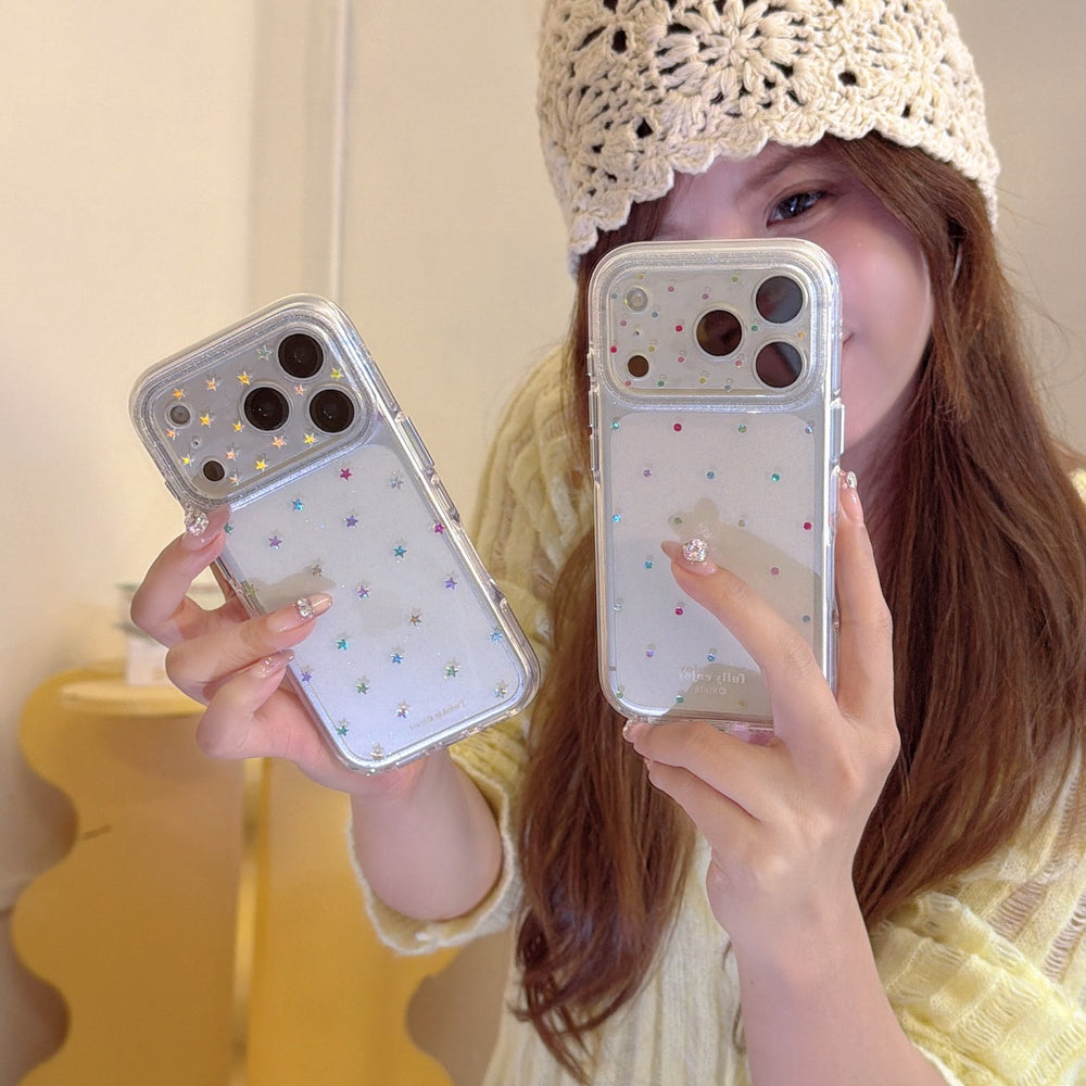 Elevate your tech with the ultimate bling iPhone case. Featuring a whimsical blend of colorful rhinestones, sparkling stars, and playful polka dots, this design captures the essence of the Y2K aesthetic with a modern, luxury twist. The Double-Sided IMD (In-Mold Decoration) technology ensures that the vibrant patterns and glitter are sealed deep within the case, providing a high-gloss finish that will never fade or scratch off.