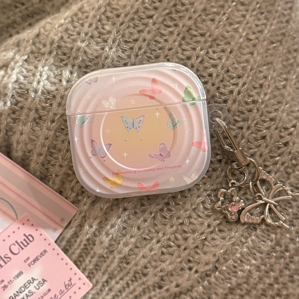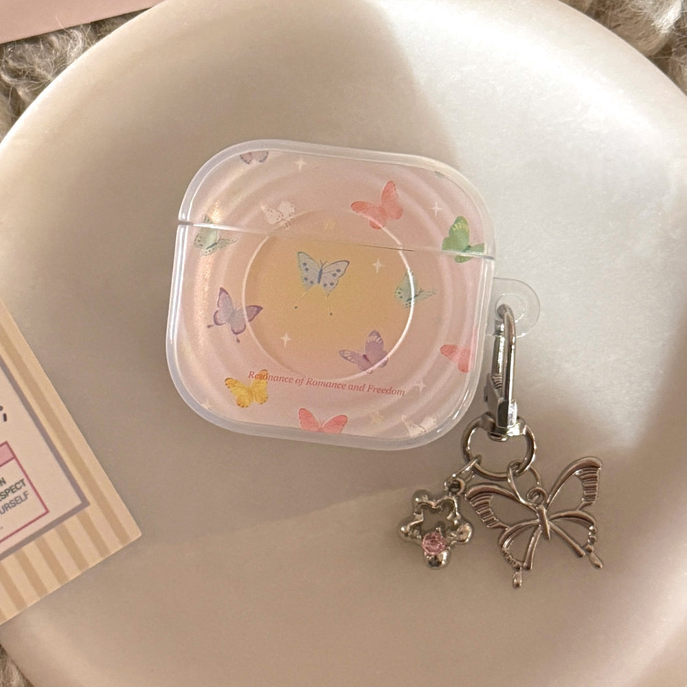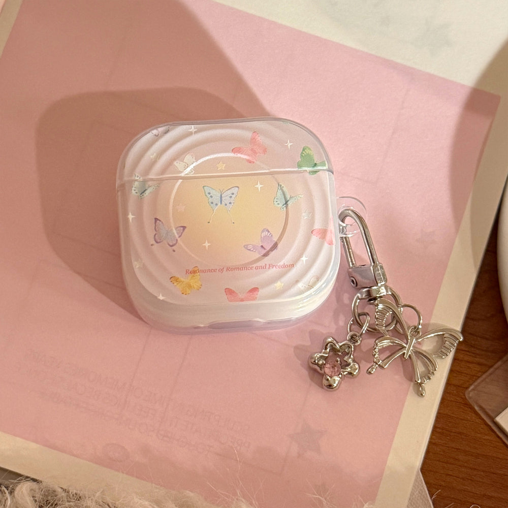 Semi-transparent purple iridescent butterfly pattern wave-shaped earphone cover