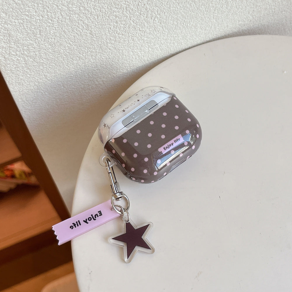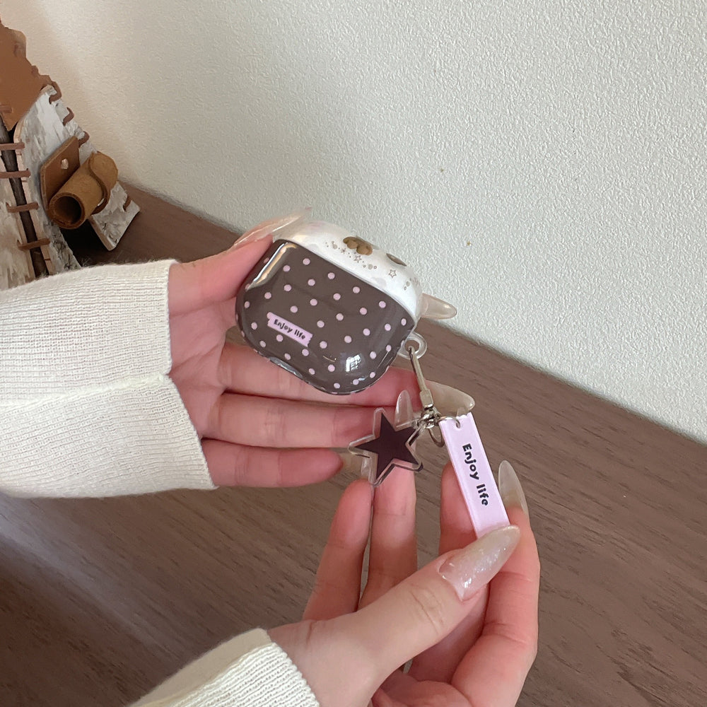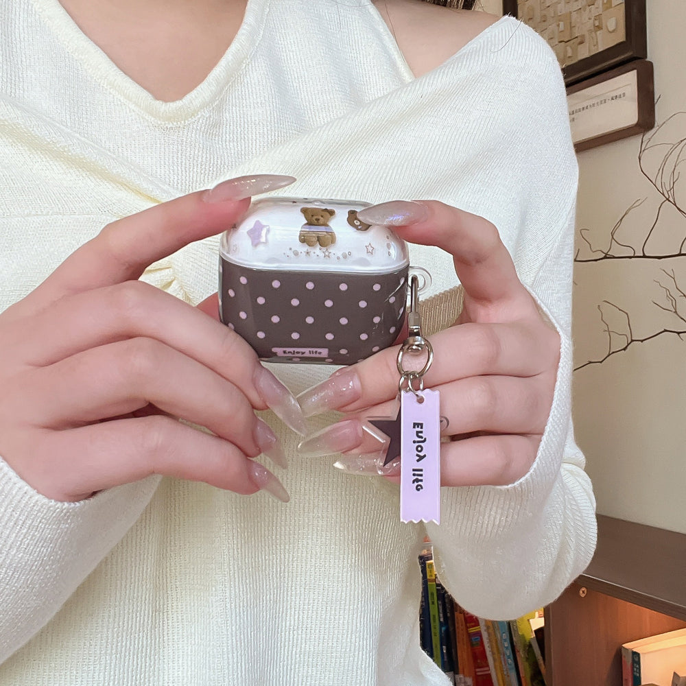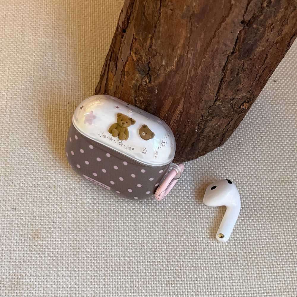 Brown and pink polka dot bear AirPods earphone case