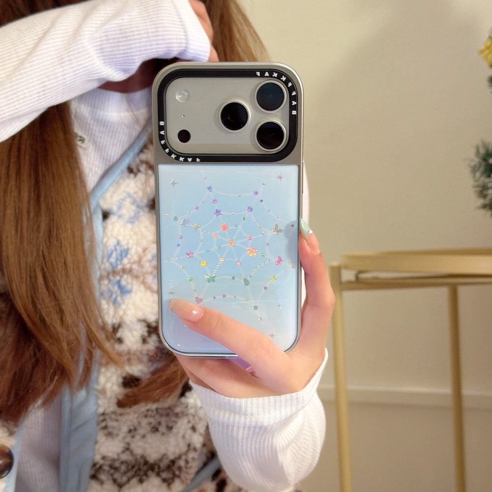 Colored gemstone spider web electroplated edge epoxy phone case