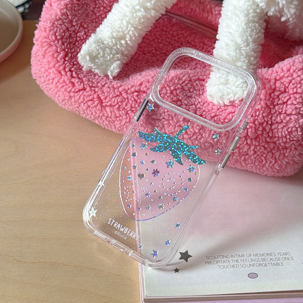Gilded colored diamond pink strawberry phone case