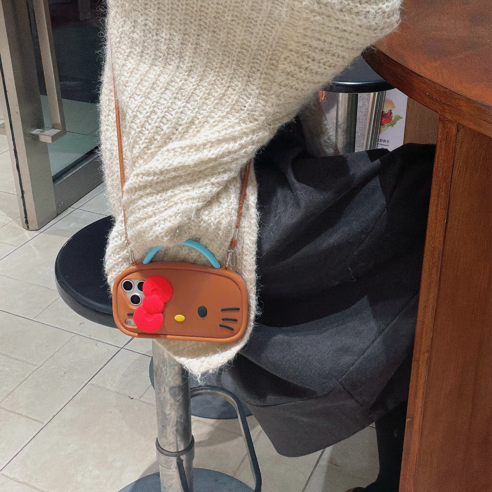 Kitty double-strap cross-body silicone phone case for Apple phones