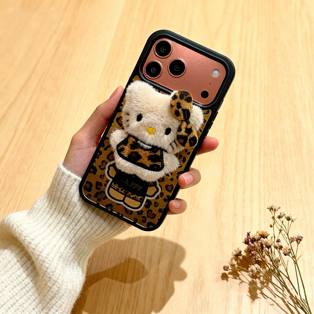 Leopard print Hello Kitty magnetic phone case for iPhone 17