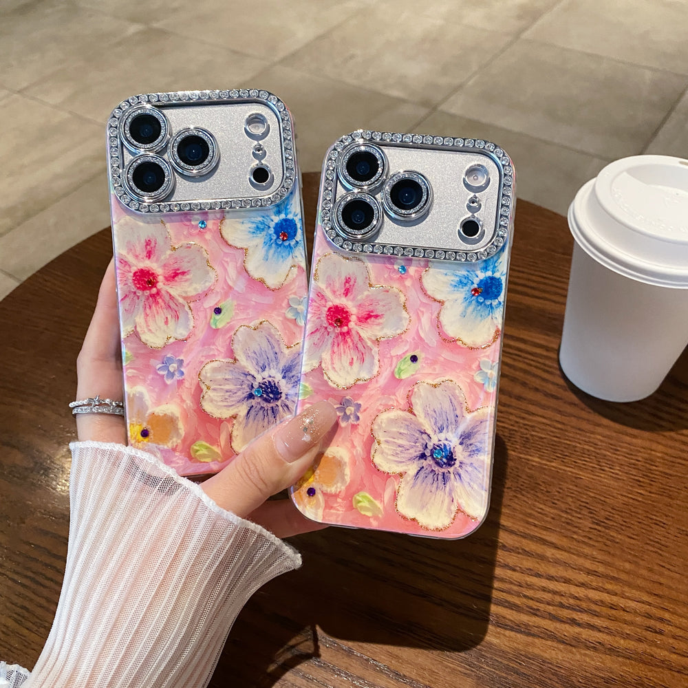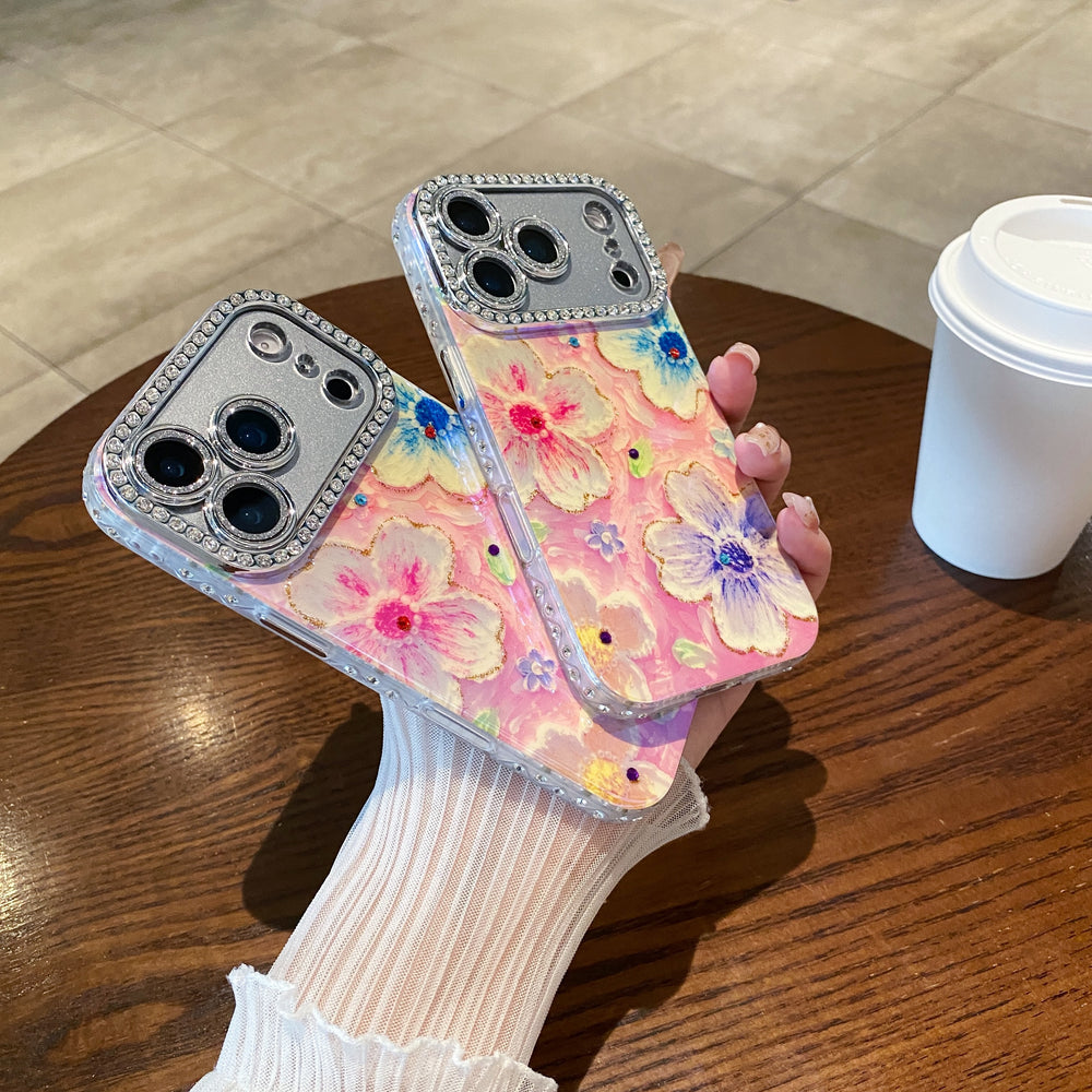 Oil painting rhinestone flower phone case