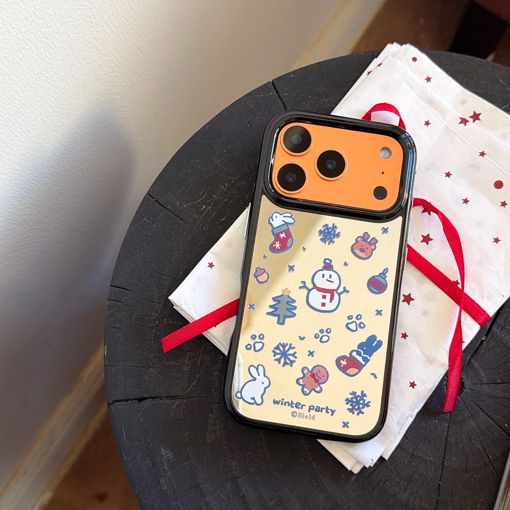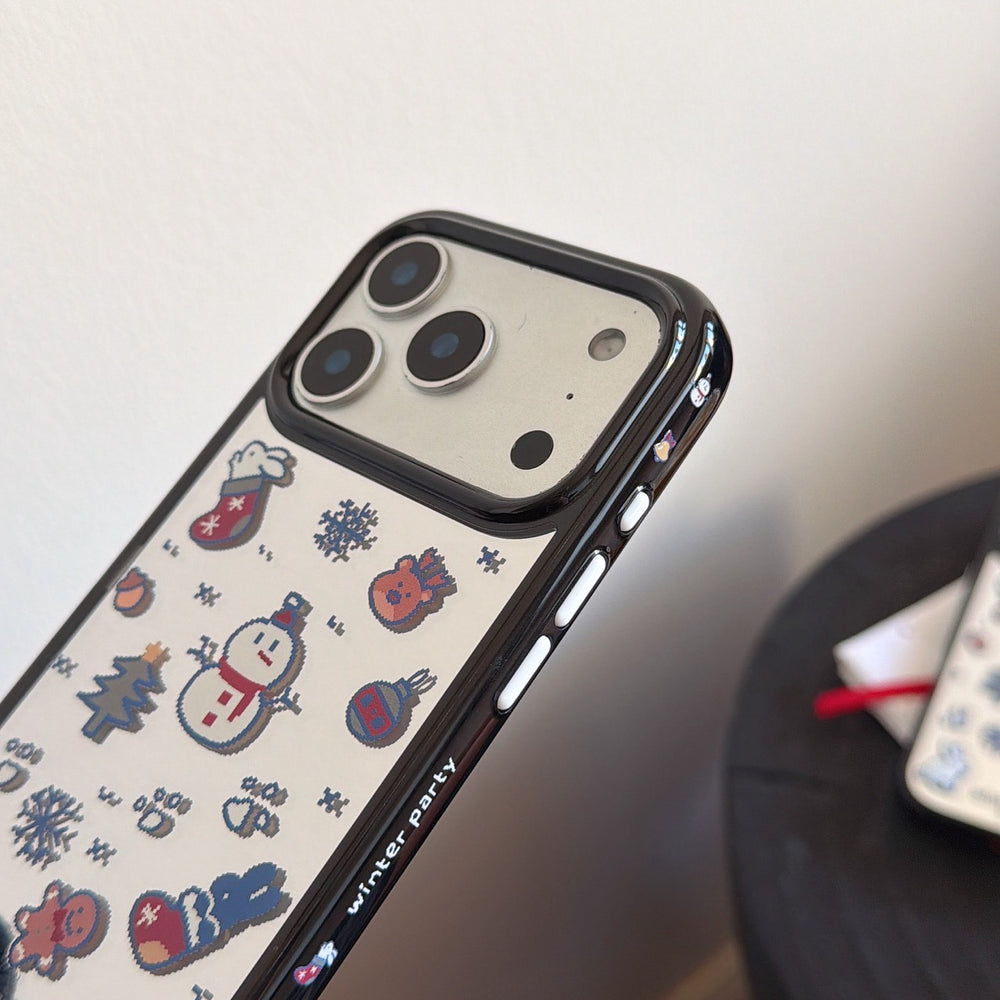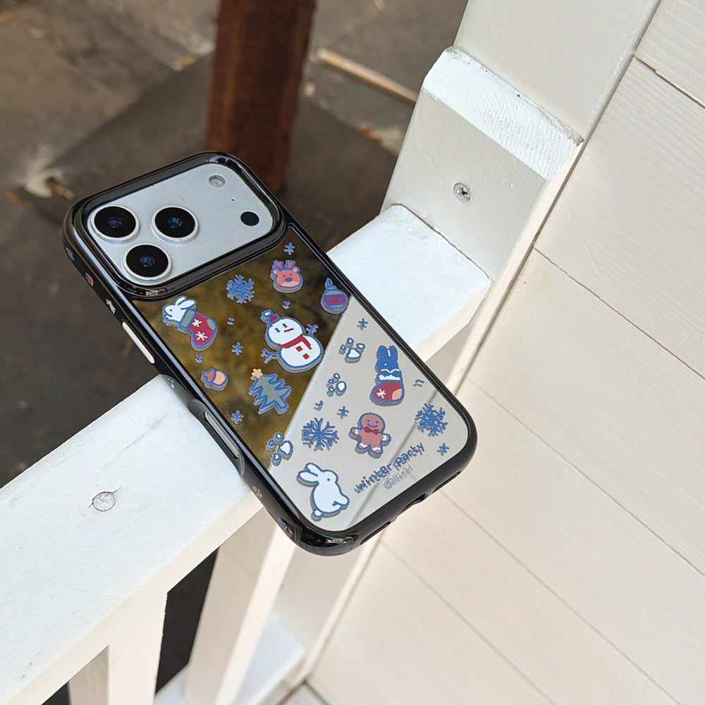 Perler bead winter bunny and snowman side profile mirrored round edge phone case