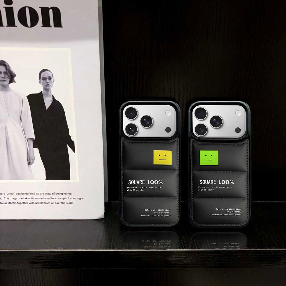 Our Square Face Puffer Phone Case for iPhone 13-17 Pro Max blends the cute bold square face design with the iconic 3D puffer texture of a down jacket, creating a one-of-a-kind tech accessory for fashion lovers who crave style and tactile comfort. Crafted with high-quality soft silicone, this Square Face Puffer iPhone Case features a plush quilted 3D puffer texture that never flattens with daily use, and the vivid square face detailing is precision-printed for fade-resistant long-lasting appeal. The soft silicone puffer case delivers a cloud-like non-slip grip, resists yellowing, minor scuffs and discoloration, and the slim 3D puffer build keeps your iPhone 13-17 Pro Max sleek without extra bulk—marrying the charm of square face design with the coziness of puffer texture perfectly.